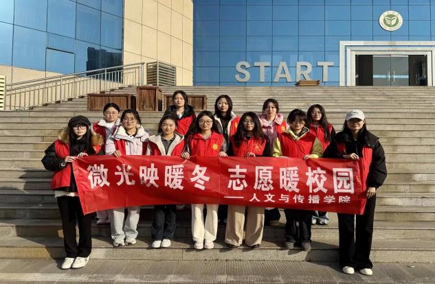 为响应12·5国际志愿者日号召,助力创建文明校园,2025年11月29日,人文与传播学院志愿实践服务团队开展“微光映暖冬,志愿暖校园”志愿服务活动。志愿者们以实际行动践行“奉献、友爱、互助、进步”的志愿精神,为冬日校园注入满满暖意。