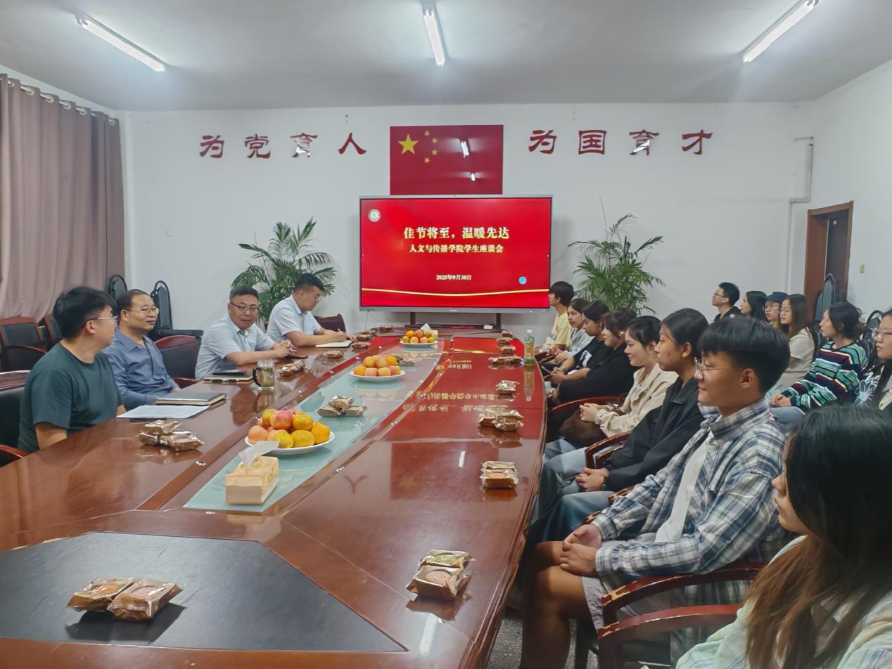 金秋九月,月满情浓。在中秋佳节即将来临之际,为帮助2025级新生更快融入大学生活,人文与传播学院于9月30日在学院会议室举办“佳节将至,温暖先达”学生座谈会。学院党委书记王永超、党委副书记徐俊凯、团委书记倪召欣、辅导员老师何维峰出席会议。会议由倪召欣主持。