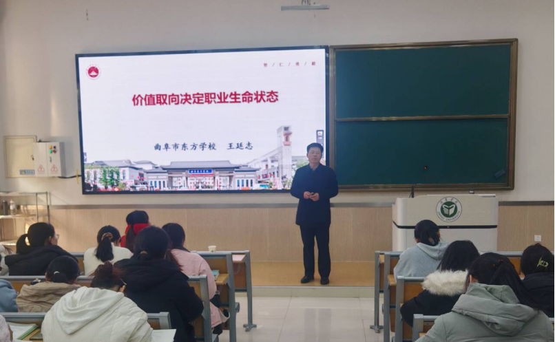为帮助师范生搭建认知与实践的桥梁,助力其提前做好职业准备、明晰发展方向,11月20日,人文与传播学院邀请曲阜市东方学校王廷志校长在2B102为师范生开展专题讲座。本次讲座由学院院长张颖慧教授主持,汉语言文学师范和历史学师范专业师生参加讲座。